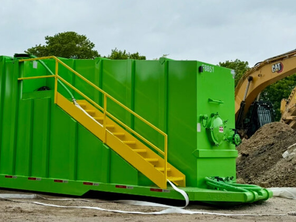 Used where site conditions won't allow a full frac tank to be staged on site. Urban project location, roadways.